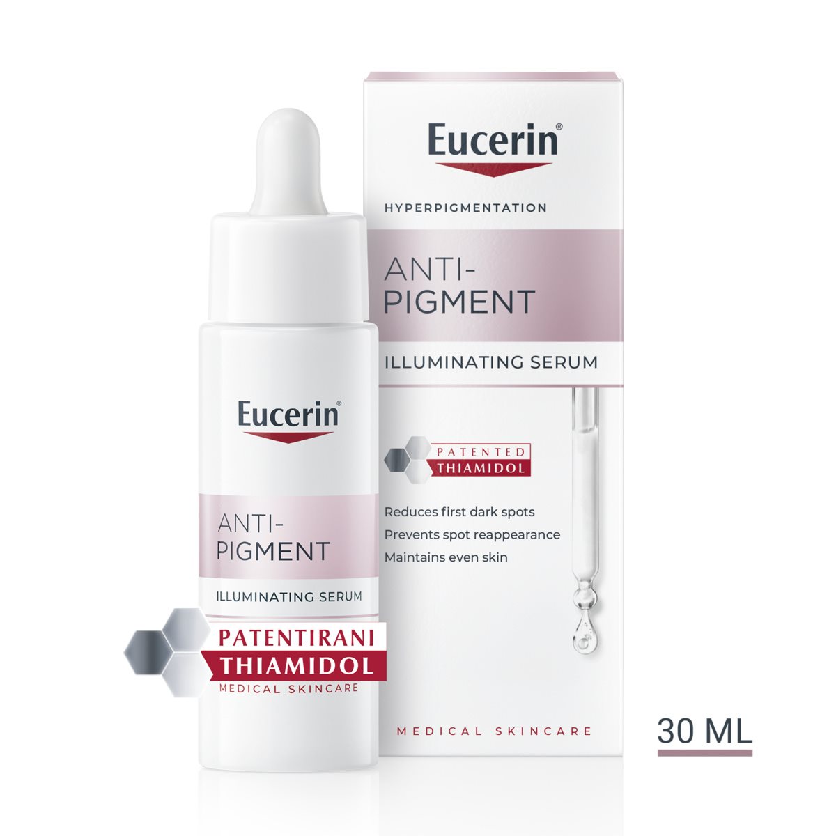 Eucerin Anti-Pigment Skin Perfecting serum spaja snažne aktivne sastojke koji na različite načine utječu na blistavost vaše kože te smanjuju hiperpigmentaciju u samom izvoru: