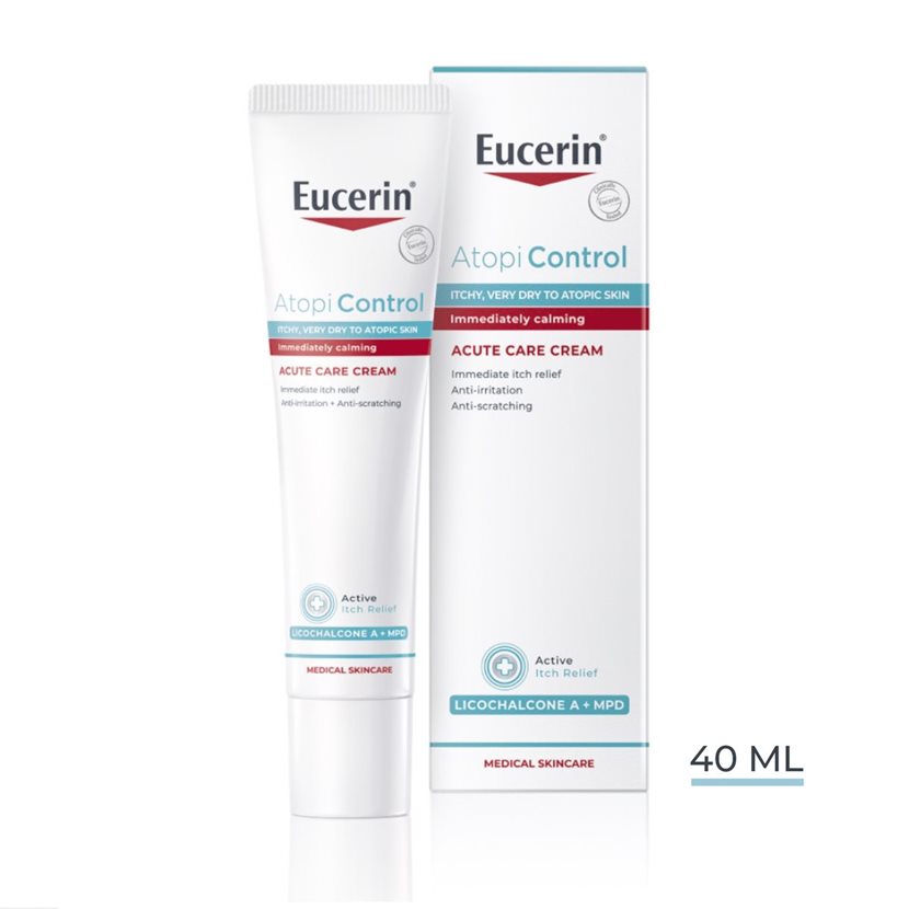 Eucerin AtopiControl Akut krema za njegu kože sklone crvenilu zahvaljujući svojim njegujućim svojstvima prekida začarani krug izbijanja osipa koji svrbi. Njezina njegujuća svojstva pomažu u smanjenju korištenja hidrokortizona tijekom izbijanja osipa. Klinička studija pokazuje da svojstva AtopiControl Akut kreme za njegu kože sklone crvenilu imaju sličan pozitivan utjecaj na izgled kože kod atopijskog dermatitisa kao i primjena 1%-tne kreme na bazi hidrokortizona AtopiControl Akut krema nije lijek i ne služi kao nadomjestak bilo kojem lijeku.