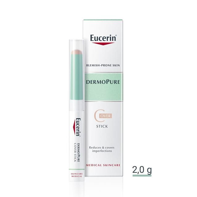 Eucerin DermoPure obojani stik za prikrivanje nepravilnosti kože je korektor koji sadrži salicilnu kiselinu koja dokazano smanjuje i prikriva pojavu prištića i mitesera. Glatko prekriva nepravilnosti i ujednačava kožu te istovremeno smanjuje prištiće i čisti začepljene pore. Obojani stik za prikrivanje se može koristiti u kombinaciji s medicinskim tretmanima, a siguran je za korištenje u trudnoći.
