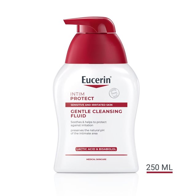 Koža intimnog područja posebno je osjetljiva te narušavanje njezine prirodne zaštite može dovesti do podložnosti iritacijama, nelagode pa čak i infekcija. Zato za ovo područje treba koristiti preparat za blago čišćenje s umirujućim svojstvima. Eucerin Fluid za intimnu njegu ima pH vrijednost od 4,5, prilagođenu pH vrijednosti ženskog intimnog područja te sadržava blagi sustav tenzida. Uz formulu koja sadržava koži svojstvenu mliječnu kiselinu zadržava prirodnu mikrofloru i umiruje iritacije. Koristite svakodnevno za čišćenje, njegu i olakšanje.