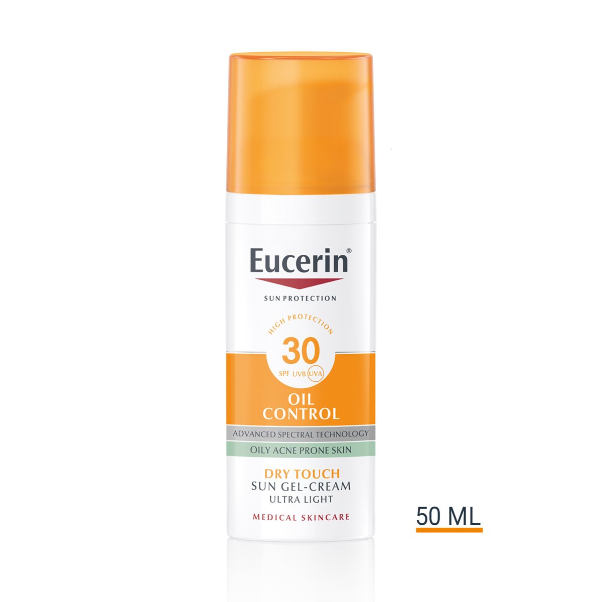 Neki ljudi s masnom kožom i skloni aknama se boje da će krema za sunčanje pogoršati njihove simptome te stoga potpuno izbjegavaju koristiti zaštitu od sunca. Posebno formulirani proizvodi kao što su Eucerin Sun Oil Control gel-krema SPF 30 namijenjeni su za masnu kožu sklonu aknama. Ultra lagana formula ima tehnologiju kontrole mašćenja koja regulira sebum s L-karnitinom i upijajućim mikročesticama. Ostavlja površinu neposredno suhu na dodir i pruža dugotrajan učinak protiv sjaja do osam sati.